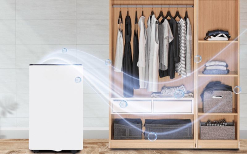 Máy hút ẩm là giải pháp hiệu quả và lâu dài giúp kiểm soát độ ẩm trong phòng, từ đó ngăn tủ quần áo bị mốc. Thiết bị hoạt động bằng cách hút hơi nước trong không khí và giữ độ ẩm ở mức an toàn, đặc biệt hữu ích trong những ngày nồm ẩm kéo dài. Khi độ ẩm không khí giảm, tủ quần áo sẽ luôn khô ráo và hạn chế tối đa nguy cơ nấm mốc hay mùi hôi. Bạn có thể bật máy định kỳ mỗi ngày hoặc tùy theo điều kiện thời tiết. Dù chi phí đầu tư ban đầu hơi cao, nhưng hiệu quả mang lại rất rõ rệt và bền vững.